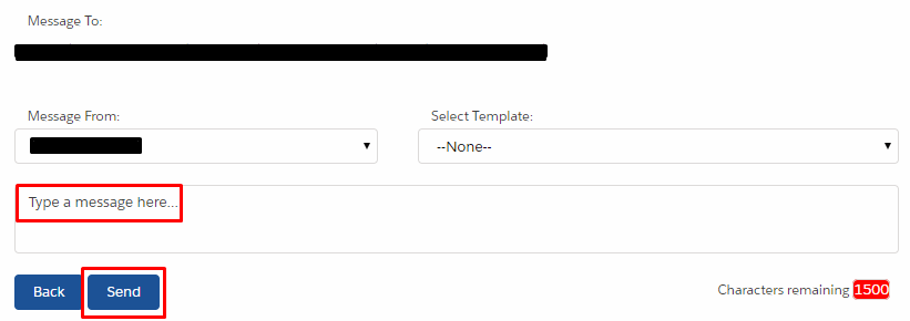 User needs to select a template or enter the Message in the given text area.